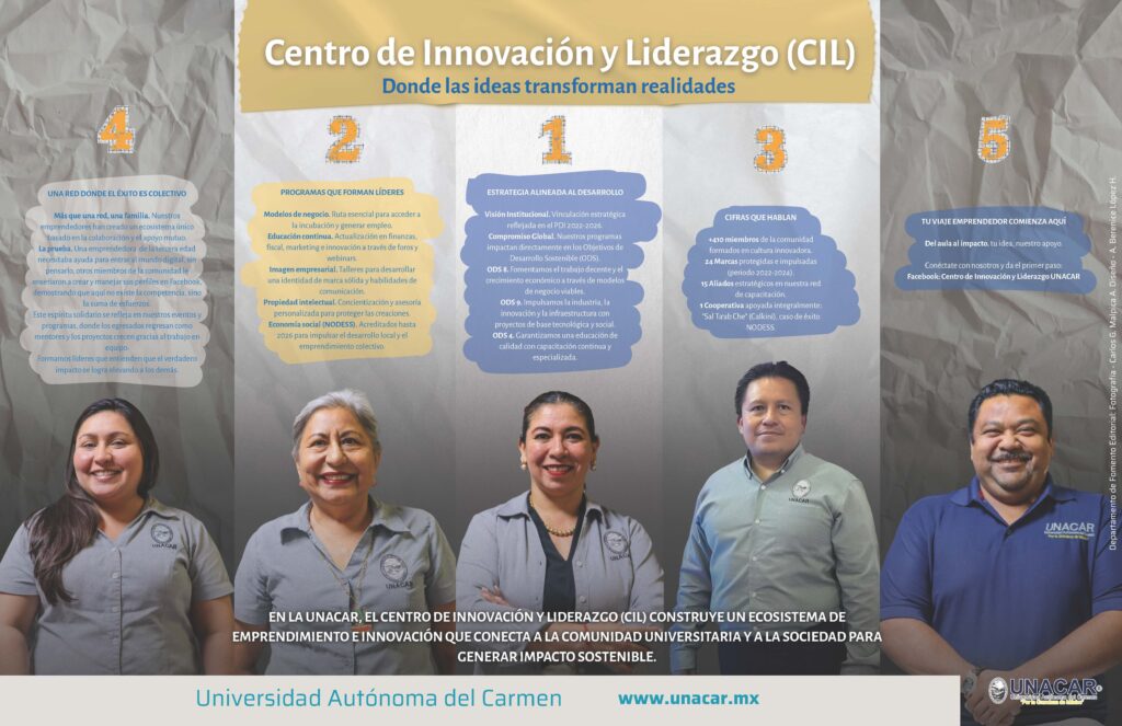 En la Universidad Autónoma del Carmen (UNACAR), el emprendimiento y la innovación son pilares estratégicos para el desarrollo regional. Un diálogo con las autoridades del Centro de Innovación y Liderazgo (CIL), encabezado por la Coordinadora General de Vinculación, Sandra Nayeli Martínez Jurado; y la Directora del CIL, Margarita Méndez Zamora, permitió profundizar en el ecosistema que conecta a estudiantes, egresados y sociedad para transformar ideas en proyectos sostenibles.