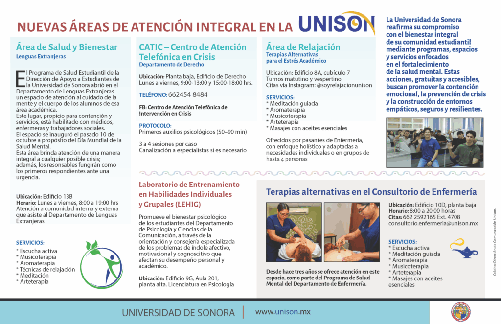 La Universidad de Sonora ha consolidado una estrategia integral para el cuidado de la salud mental y el bienestar de sus estudiantes, mediante la implementación de programas y servicios especializados que fortalecen su desarrollo académico y personal.